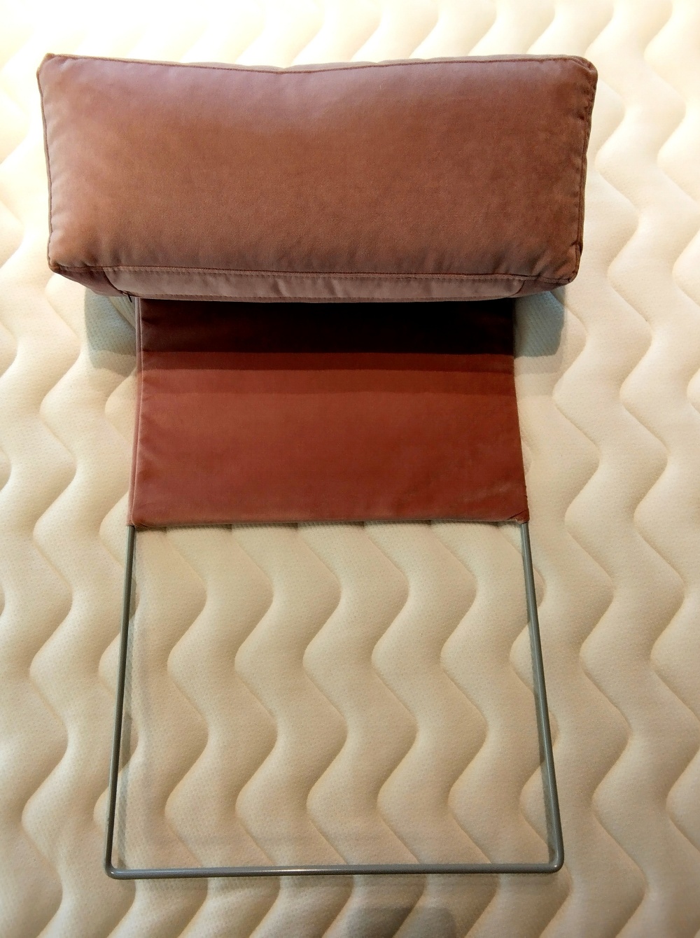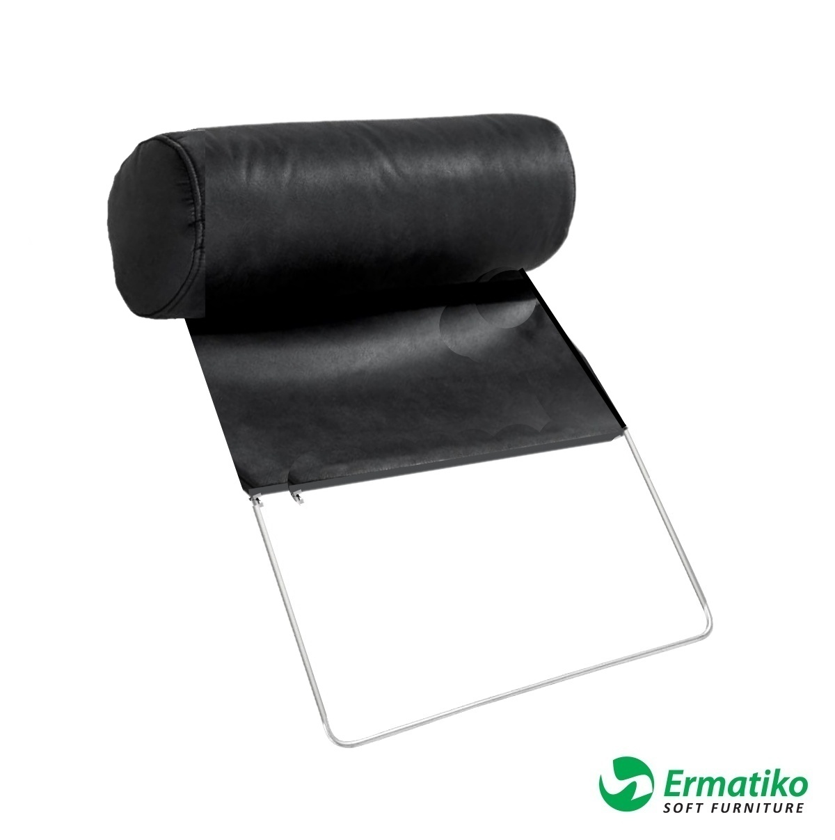 Yksivärinen niskatyyny nahalla verhoiltuna ja metallikehikolla