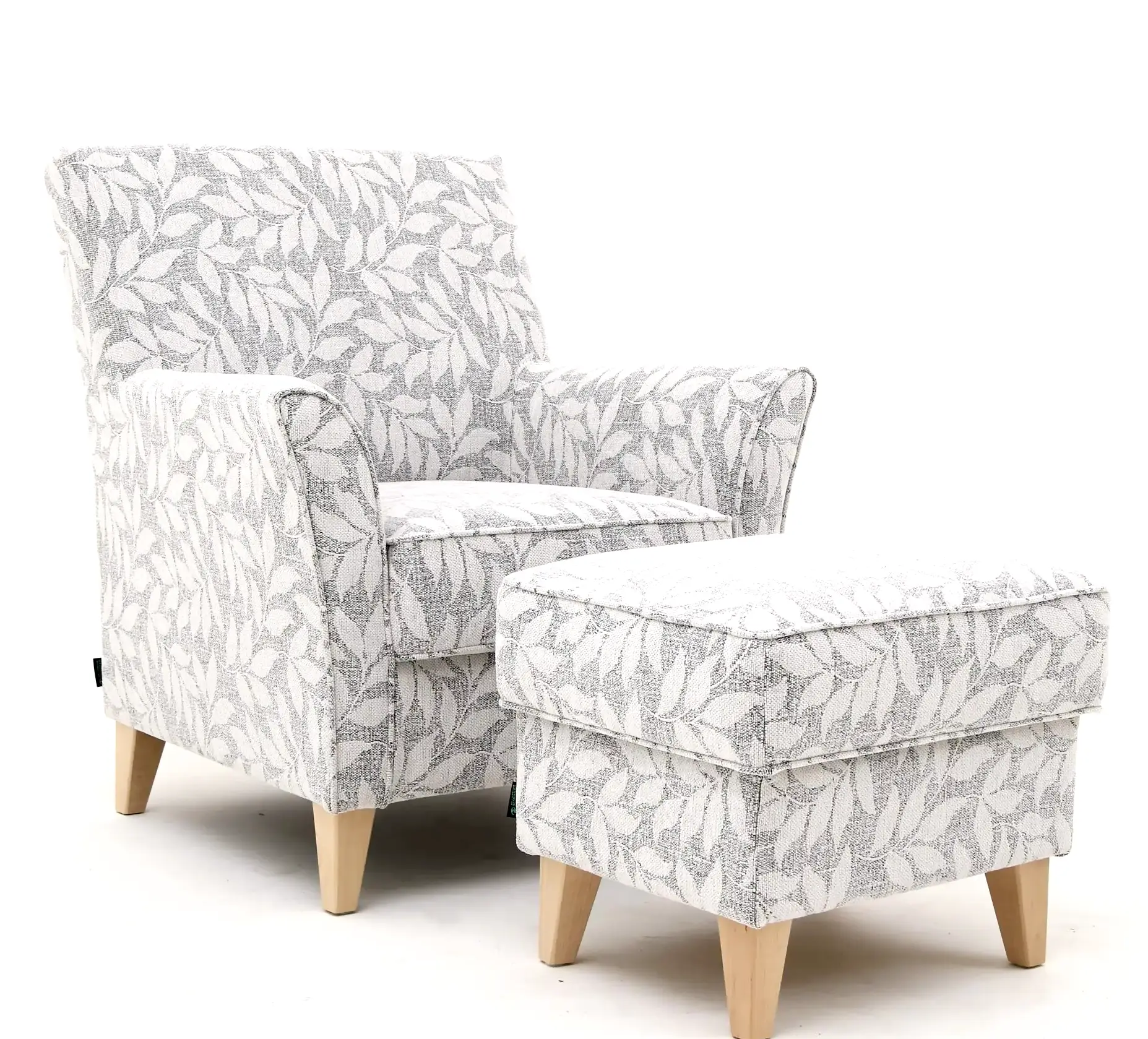 Nora nojatuoli kuviollisella kankaalla