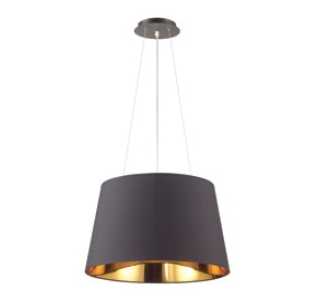 Nordik riippuvalaisin yhdistää mattamustan metallirungon ja mustan kangasvarjostimen, jonka kullanvärinen sisus heijastaa valon pehmeänä ja kutsuvana. Lopputuloksena on elegantti ja tunnelmallinen valaistus, joka sopii täydellisesti ruokapöydän, olohuoneen tai makuuhuoneen katseenvangitsijaksi.