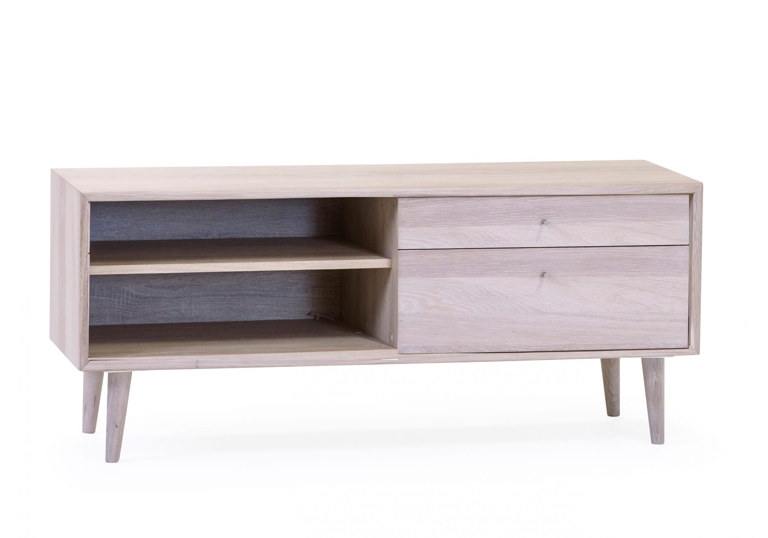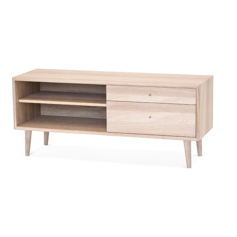 Nordik tv-taso 118 on upea valkoöljytystä tammiviilusta valmistettu kaluste, joka tuo olohuoneeseen vaaleaa, harmonista ja modernia ilmettä. Selkeälinjainen muotoilu ja luonnonmateriaalit tekevät tasosta helposti yhdistettävän skandinaaviseen ja ajattomaan sisustukseen.