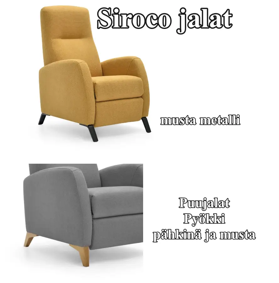 Siroco-recliner yhdistää perinteisen nojatuolin ulkonäön ja modernin, selkeän linjakkuuden tarjoten kodin sisustukseen hillityn mutta ylellisen lisän. Nostoavusteinen mekanismi kahdella moottorilla mahdollistaa jalkatuen ja selkänojan erillisen säädön, ja yhdellä napinpainalluksella tuoli avustaa käyttäjää turvallisesti lähes seisoma-asentoon asti.