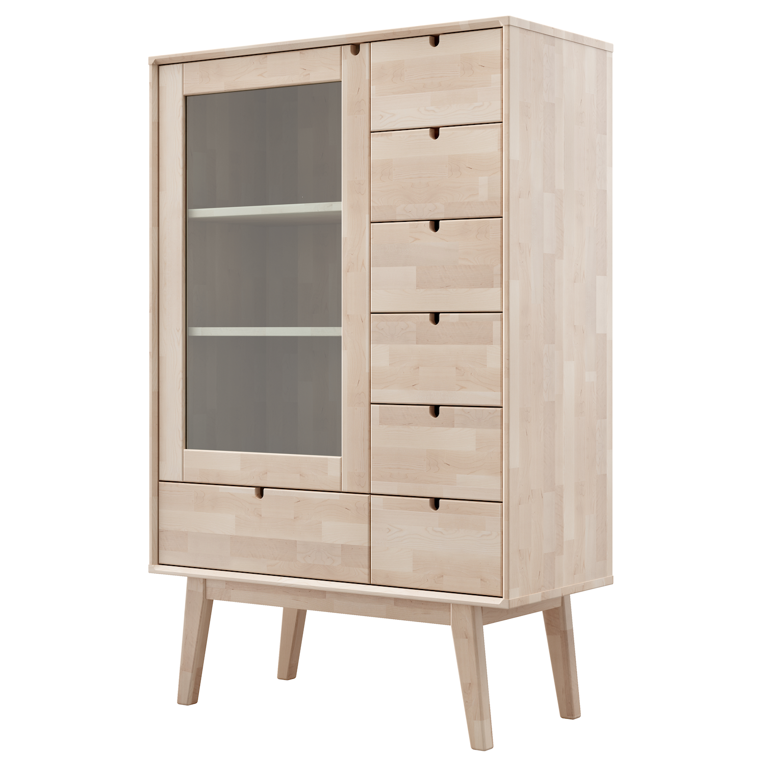 yhdistäen minimalistisen ja klassisen tyylin saumattomasti. Notte-sarjan tuotteet on suunniteltu vastaamaan erilaisten kotien tarpeita ja kestämään aikaa. Tämä vitriini sulautuu luonnollisesti osaksi kodin muuta sisustusta ja luo tilaan yhtenäisyyttä ja tasapainoa. Notte-vitriini on valmistettu korkealaatuisesta massiivikoivusta, joka edustaa kestävyyttä, arvokkuutta ja luonnonläheisyyttä. Massiivikoivu tunnetaan sen tiheästä rakenteesta, joka tekee siitä erityisen kestävän ja pitkäikäisen materiaalin. Pehmeästi sulkeutuvat laatikot ja huolella viimeistellyt yksityiskohdat takaavat pitkäaikaisen toimivuuden ja visuaalisen kauneuden.