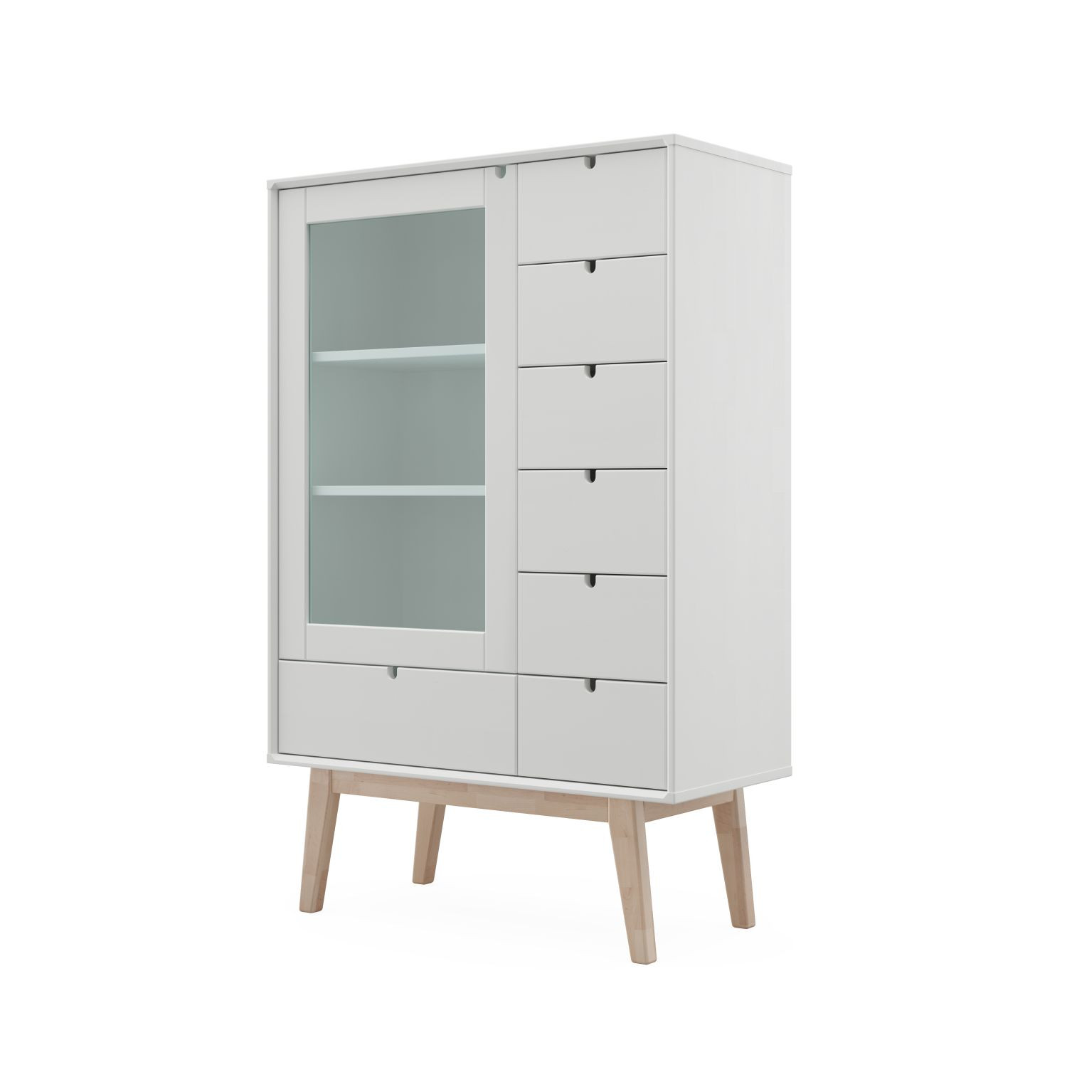 Elegantti Notte vitriini modernia ja klassista ajattomuutta on kotisi tyylikäs katseenvangitsija. Sen linjakas ja ajaton muotoilu tarjoaa sekä esteettisyyttä että käytännöllisyyttä. Notte vitriini on suunniteltu tarjoamaan monipuolisia säilytysratkaisuja, jotka sopivat erilaisiin sisustustyyleihin ja tarpeisiin. Notte vitriiniä on saatavana kahdella eri värillä kuten valkoinen tai koivu. Notte vitriini koostuu kuudesta kapeasta laatikosta, yhdestä leveästä laatikosta ja vitriiniovesta, jonka takana on kaksi hyllyä. Tämä rakenne takaa runsaan säilytystilan niin koriste-esineille kuin arjen tarpeellisille tavaroille. Laatikot on suunniteltu käytännöllisiksi ja helposti avattaviksi, kun taas vitriiniosan lasiovet tuovat esille kauniita yksityiskohtia, kuten astiastot tai muistoesineet