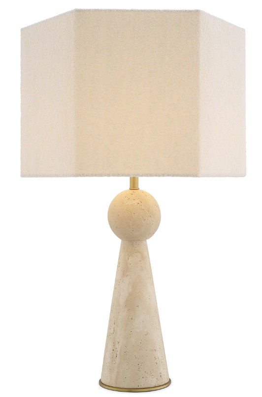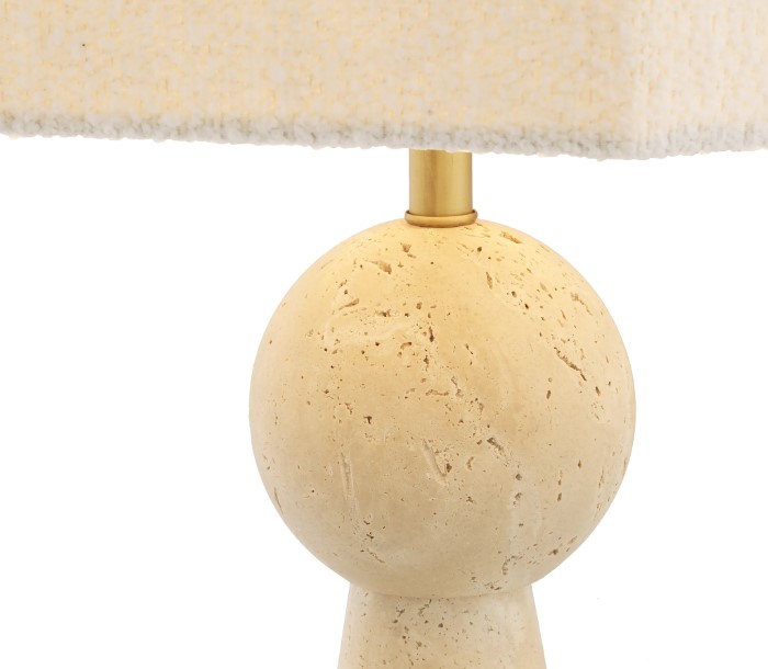 Novak-pöytävalaisin tuo sisustukseesi hienostunutta eleganssia vaaleasta travertiinikivestä valmistetulla rungollaan, joka toimii näyttävänä ja luonnollisena sisustuselementtinä. Kulmikas, luonnonvalkoinen boucle-varjostin pehmentää valoa ja luo lämpimän, rauhoittavan tunnelman mihin tahansa tilaan.