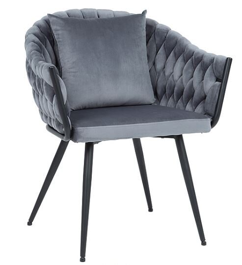 Nuvo tuoli yhdistää harmaan samettikankaan pehmeän ylellisyyden ja mustan metallirungon modernin ilmeen, tuoden kotiisi tyylikkään ja ajattoman lisän. Sen siro ja viimeistelty muotoilu sulautuu täydellisesti niin moderniin kuin klassiseenkin sisustukseen.