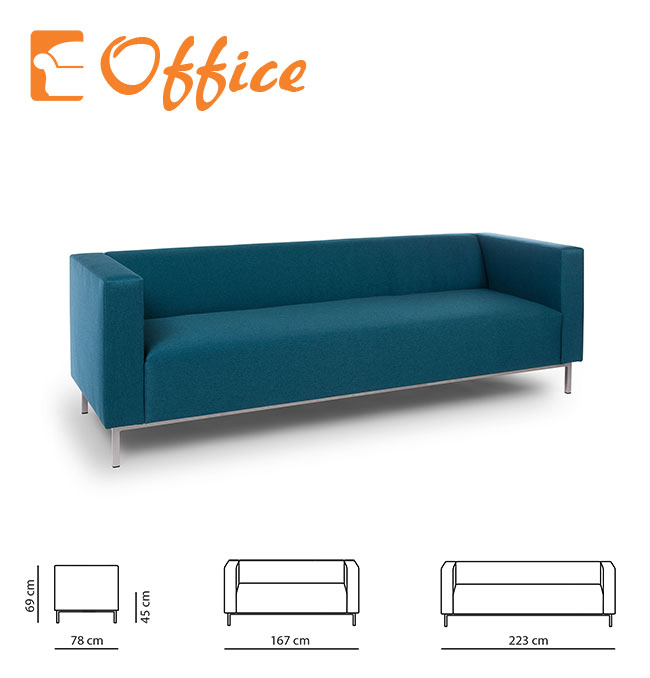 Office 3 ist sohva sohva on moderni ja monipuolinen valinta, joka soveltuu erinomaisesti tyyliltään myös julkitiloihin. Runko on laadukasta massiivipuuta, kalustelevyä sekä vaneria. Laadukkaan zig-zag jousituksen ansiosta Office sohva tarjoaa erinomaisen sekä kestävän istuintuntuman. Office sohva on tyyliltään suoralinjainen ja sohvassa on korkeat metalliset kromijalat.