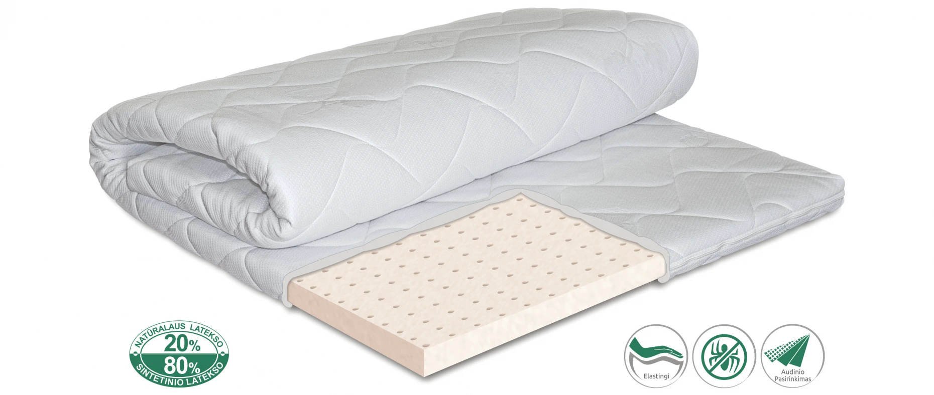 Ohut Luonnonkumi Sijauspatja - 120x200 cm