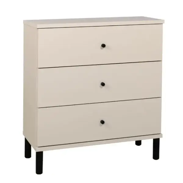 Olki-kalusteet tarjoavat laajat mahdollisuudet personointiin: rungon, kannen ja etusarjan väriksi voit valita valkoisen, hiekkatammen, greigen tai niiden yhdistelmän. Tyylikkäät mustat korkeat jalat ja mustat nuppivetimet viimeistelevät modernin ja elegantin ulkonäön. Kaluste toimitetaan runko koottuna – sinun tarvitsee vain kiinnittää jalat ja vetimet, ja se on heti käyttövalmis ilman stressaavaa kokoamista.