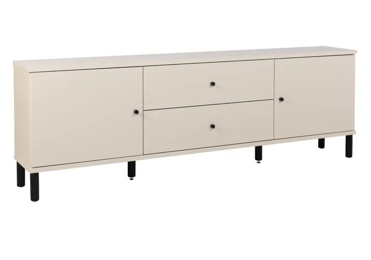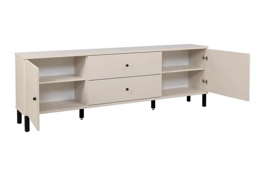 Kotimaisena laatutuotteena Olki-tv-taso on tehty kestämään aikaa ja käyttöä. Sen leveys on 193 cm, ja se tarjoaa runsaasti säilytystilaa kahden välihyllyllä jaetun kaapin sekä kahden vetolaatikon avulla. Siron rakenteen ja korkean mustan jalan ansiosta taso näyttää kevyeltä ja tyylikkäältä, vaikka sen säilytyskapasiteetti yllättää positiivisesti. Tutustu muihin saman sarjan tuotteisiin