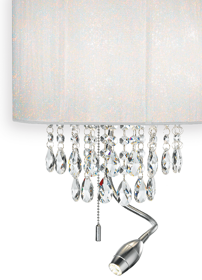 Tyylikäs Opera AP3 seinävalaisin tuo sisustukseen ripauksen klassista ylellisyyttä modernilla otteella. Kirkkaat kristalliriipukset yhdistettynä kromirunkoon ja valkoiseen varjostimeen luovat elegantin kokonaisuuden, joka sopii täydellisesti makuuhuoneeseen, olohuoneeseen tai edustavaan käytävätilaan.
