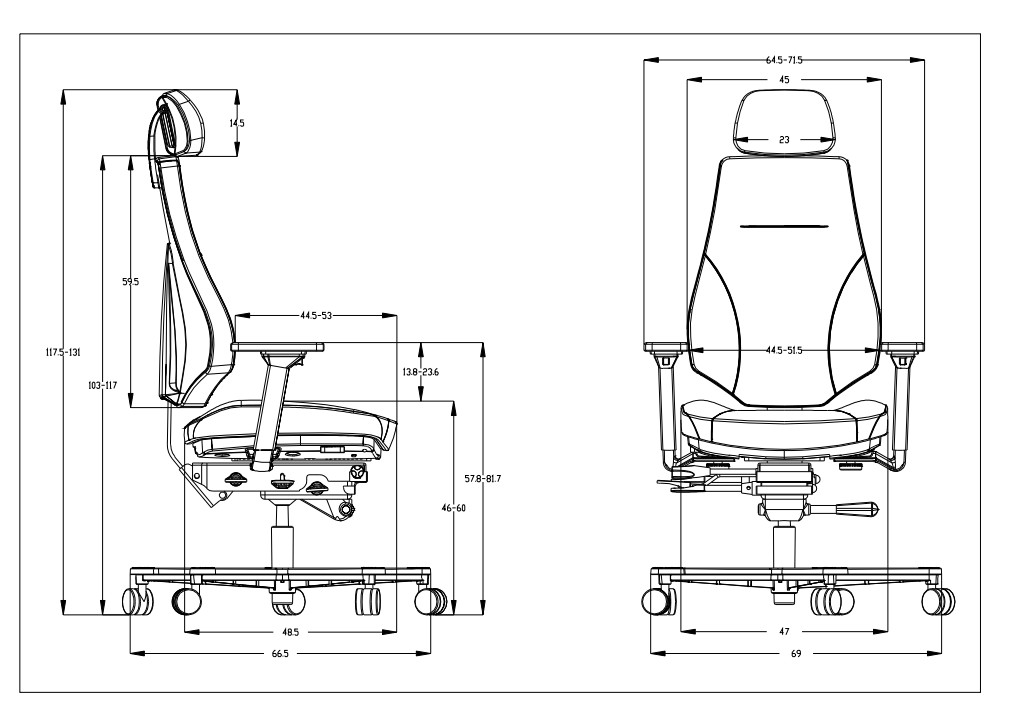 | 53 cm | 51 cm | 56 cm | 72 cm | cm | cm | cm | 48 cm | 47 cm | 49 cm | cm | cm | 43 cm | 59 cm | cm | cm | cm | cm | cm | cm | cm | cm | cm | cm | cm | cm | cm | cm | Niskatuen korkeus 14 cm ja leveys 23 cm | Musta | cm | Painoraja 180 kg | Takuu 2 vuotta | Tilaustuote | Toimitus osina | 24 kg | cm | cm | cm | 4D käsinojat jossa käsinojien leveyden ja korkeuden säätö, istuinsyvyyden säätö, Istuin pehmustettua vaneria, Korkeuden säätö kaasujousella, Korkeus- ja sivusäädettävät käsinojat jossa yläosa kääntyy kulmittain, käsinoja liukuu eteen- ja taaksepäin, Mekanismissa erillinen selkänojan kulman säätö, painon mukaan säädettävä keinuvastus, pyörät pehmeät kovalle lattialle, Selkänojan korkeudensäätö, Säädettävä ilmatäytteinen ristiseläntuki, Tuolissa Nylonristikko | Verhoilu Fighter, kulutuskestävyys 130 000 martindale |