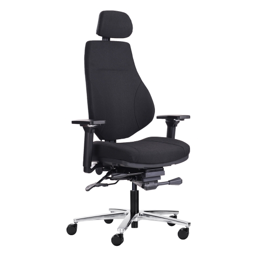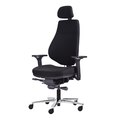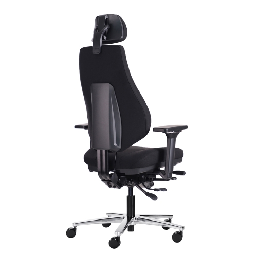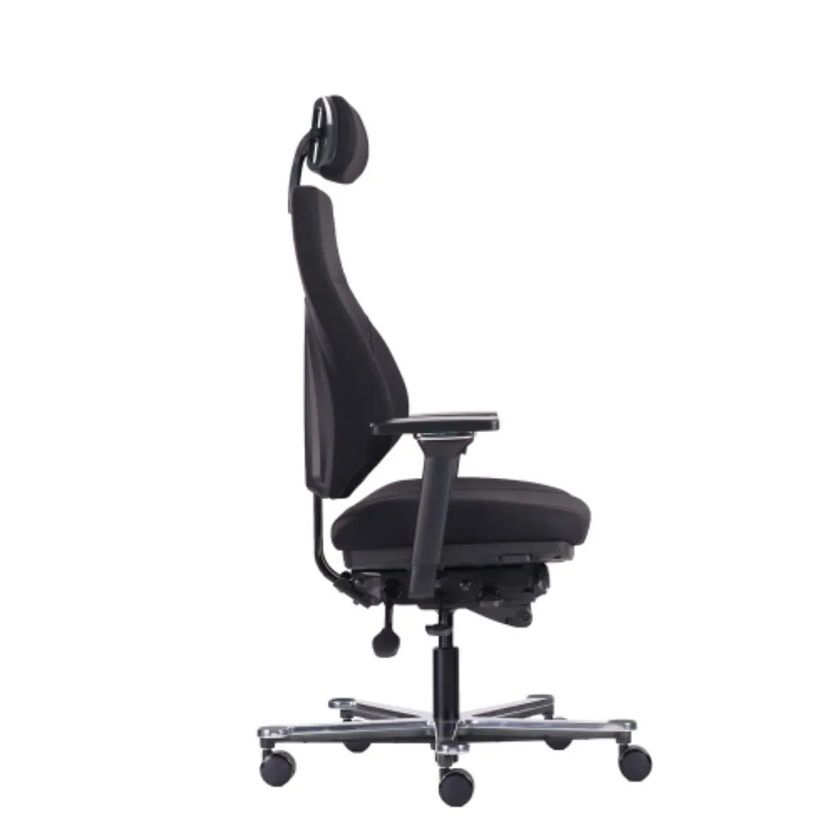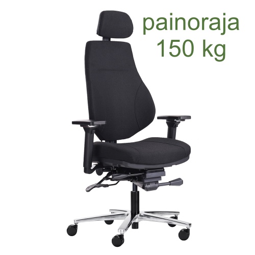 Työtuolin verhoiluna käytetty erittäin kestävä Fighter-kangas (130 000 Martindalea) takaa pitkäikäisen ja huolellisesti viimeistellyn käyttökokemuksen. Kiillotettu alumiiniristikko ja musta verhoilu luovat modernin ja edustavan ilmeen, joka sopii sekä toimistoon että kotityötilaan.