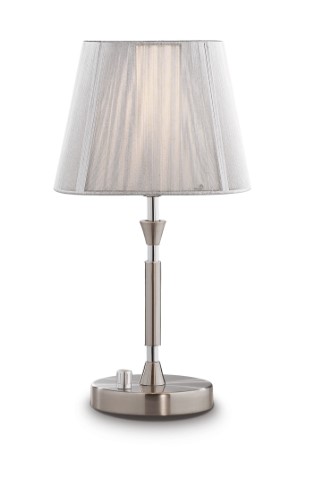 Väri: jalka; hopea varjostin hopea Materiaali: metalli, kangasnaruvarjostin Tekniset tiedot: Kokonaisteho: 1x40W Lampputyyppi: E27 Paino: 2,4 kg IP luokitus: IP20 Polttimet eivät sisälly toimitukseen Mitat: leveys 18 cm jalustan halkaisija 11 cm korkeus 37 cm