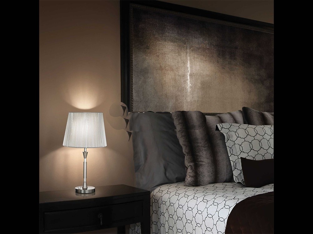 • Korkealaatuiset materiaalit: Valaisimen jalka on valmistettu kestävästä metallista ja varjostin hienostuneesta kangasnaruvarjostimesta, mikä takaa pitkäikäisyyden ja ajattoman ilmeen.
