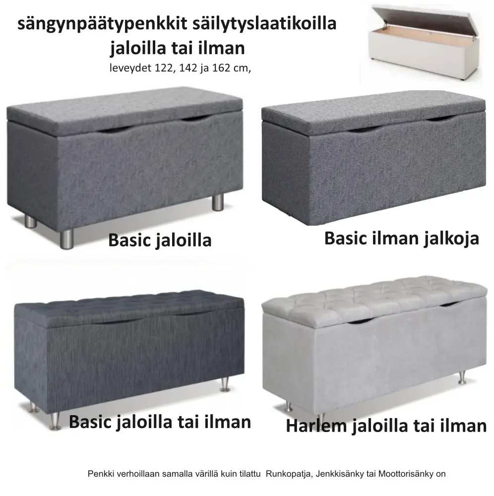 Sänkyyn on saatavilla yhteensopiva sängynpääty ja päätypenkki, ja suosittelemme lisäksi Pouta-sijauspatjansuojaa patjan käyttöiän pidentämiseksi. Täydennä kokonaisuus laadukkaalla peitto- ja tyynysetillä täydellisen unielämyksen saavuttamiseksi.