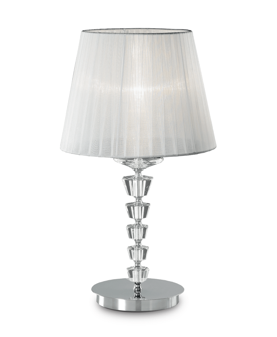 Pegaso TL1 pöytävalaisin on elegantti kristalleilla viimeistelty pöytävalaisin, jossa italialainen design ja organza-varjostin luovat pehmeän ja ylellisen valaistuksen. Se on ajaton valinta sisätiloihin, joissa arvostetaan laadukkaita yksityiskohtia ja tunnelmallista valoa.