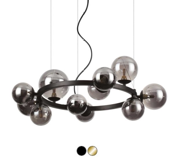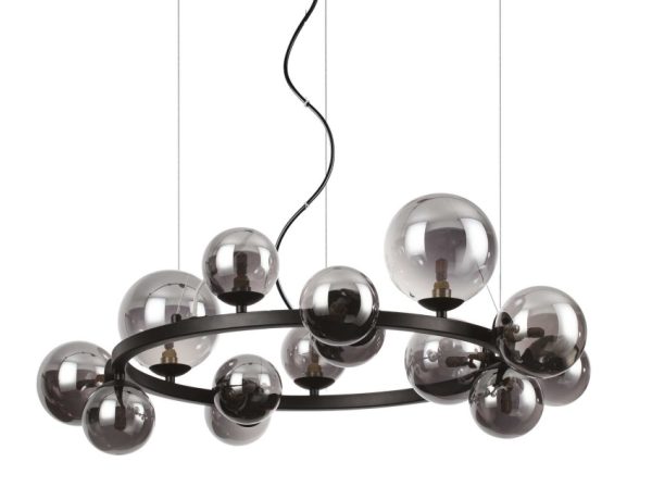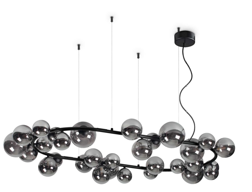 - Tyylikäs metallirunkoinen riippuvalaisin. Valaisimessa kumipällysteiset teräskaapelit ja PVC- johto. Design Italia.