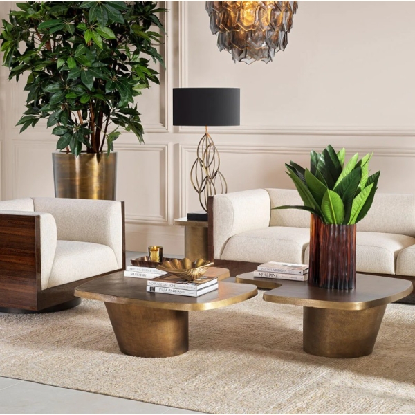 Pierro on tyylikäs kahden sohvapöydän design-setti, jossa suurempi ja pienempi pöytä muodostavat harmonisen kokonaisuuden. Tämä veistoksellinen sohvapöytäsetti tuo olohuoneeseen modernia eleganssia ja monipuolista käytettävyyttä.