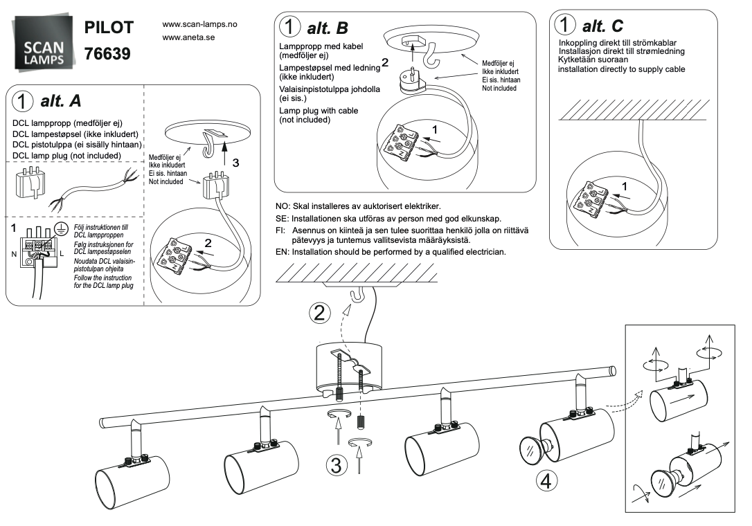 Jokaisen spotin asento on säädettävissä, joten valaistus voidaan suunnata juuri haluttuihin kohtiin. Tämä tekee Pilot spottivalaisimesta erinomaisen ratkaisun sekä yleisvalaistukseen että kohdevalaistukseen, esimerkiksi työtasoille, tauluihin tai sisustuselementteihin.