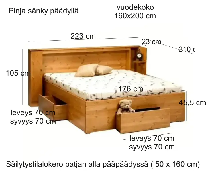Pinja sänky 160×200 cm säilytyslaatikoilla