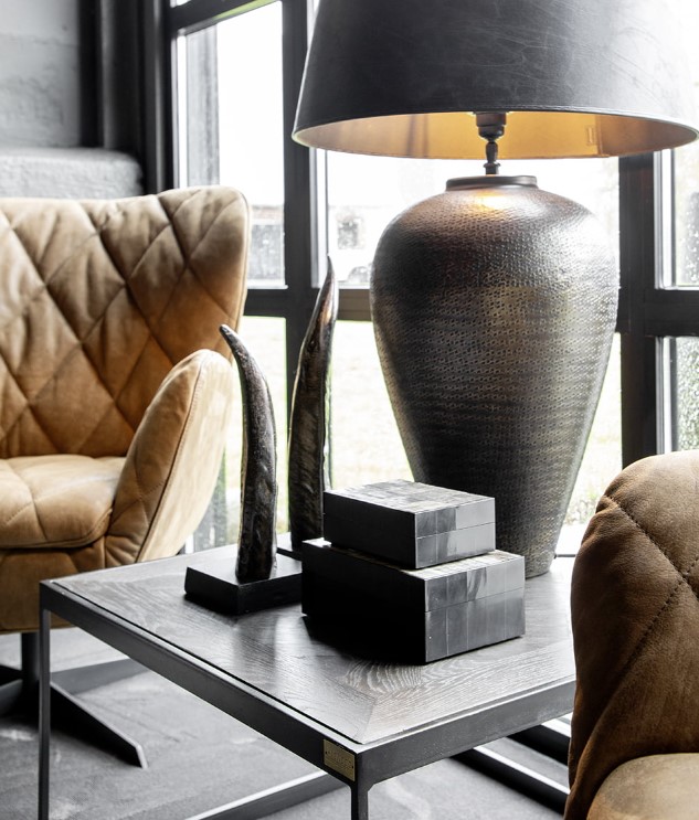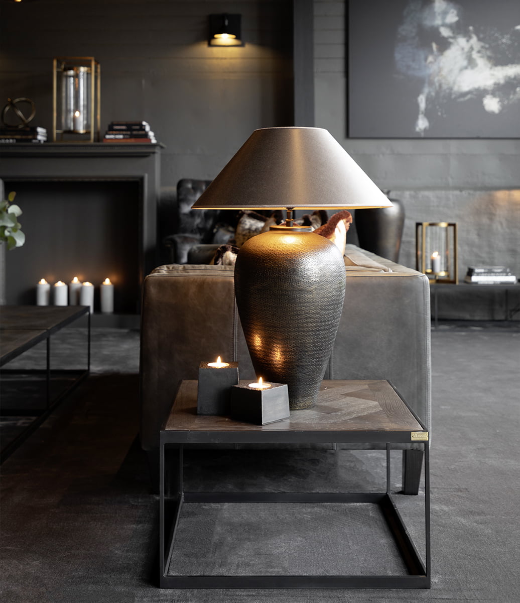 Pittsburgh-sivupöytä yhdistää ohuen mattamustan metallirungon ja parkettikuvioisen tammiviilun, tuoden sisustukseen hillittyä eleganssia, joka sopii saumattomasti sekä moderneihin että perinteisiin koteihin.