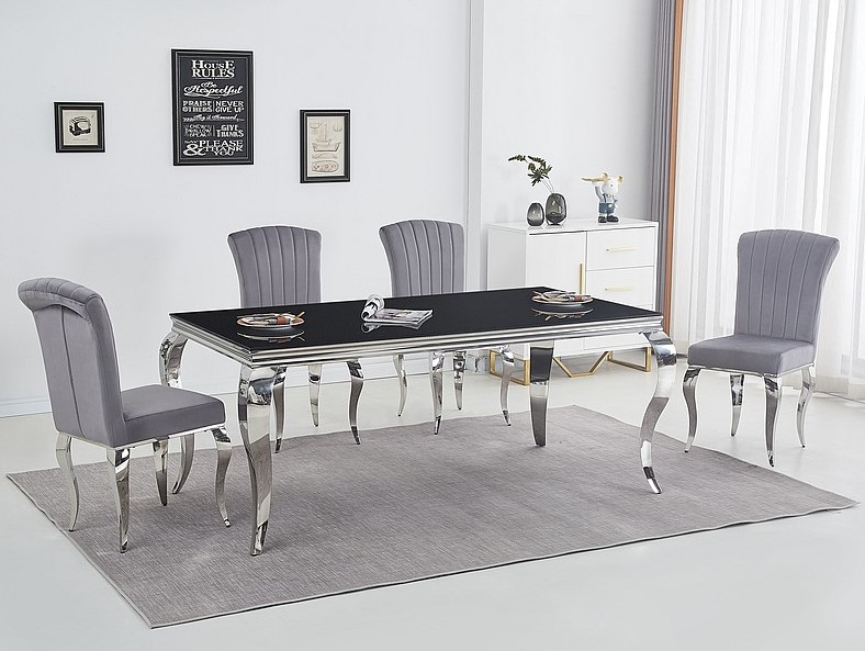 Prince-tuoli yhdistää mustan samettiverhoilun ja kiiltävät kromijalat, luoden näyttävän ja modernin kokonaisuuden, joka sopii täydellisesti niin elegantteihin kuin minimalistisiin sisustuksiin. Sen viimeistelty muotoilu tuo tilaan arvokkuutta ja tekee tuolista upean katseenvangitsijan.