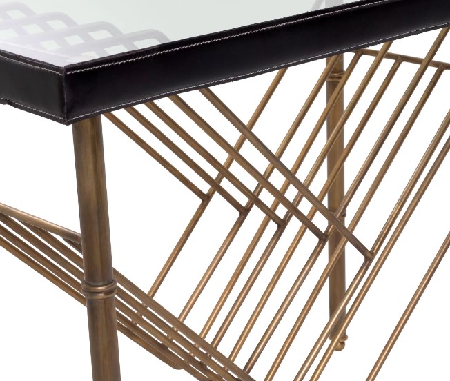 Princess-sivupöytä yhdistää tyylikkään lasikannen, näyttävät nahkareunukset ja vintage-messinkisen rungon, luoden ylellisen ja viimeistellyn kokonaisuuden jokaiseen tilaan. Sen harmoninen design sopii täydellisesti niin moderniin kuin klassiseen sisustukseen, tehden pöydästä näyttävän katseenvangitsijan.