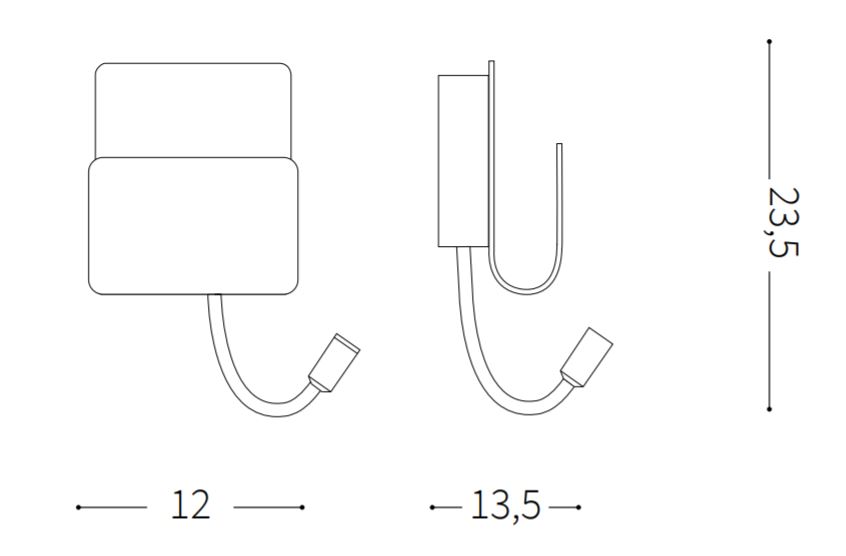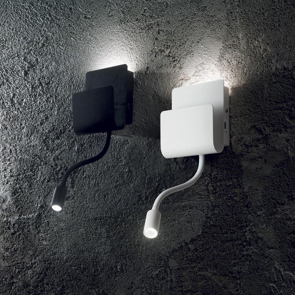 - Upea metallinen Probe AP2 seinävalaisin yläspäinsuuntaavalla yleisvalolla ja säädettävällä lukuvalolla. Molemmissa valoissa itsenäiset integroidut kytkimet. Valaisimessa USB-liitäntä. Design Italia.