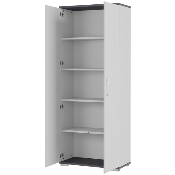 Profi kaappi 4250 on modernin Profi-toimistosarjan näyttävä osa, jossa kaksiovisen rakenteen sisällä neljä välihyllyä tarjoavat runsaasti tilaa mapeille, kansioille ja tärkeille asiakirjoille. Sen selkeälinjainen ulkonäkö tuo työpisteeseen ryhtiä ja ammattimaisuutta ilman turhaa tilan viemistä.