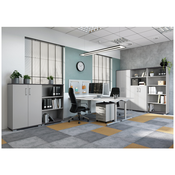 Tyylikäs vaalean harmaa/hopea väri ja moderni muotoilu tekevät pöydästä näyttävän lisän minkä tahansa työpisteen kokonaisuuteen. Pöytä on helppo yhdistää muihin Profi-sarjan tuotteisiin, mikä luo harmonisen ja toimivan työympäristön.