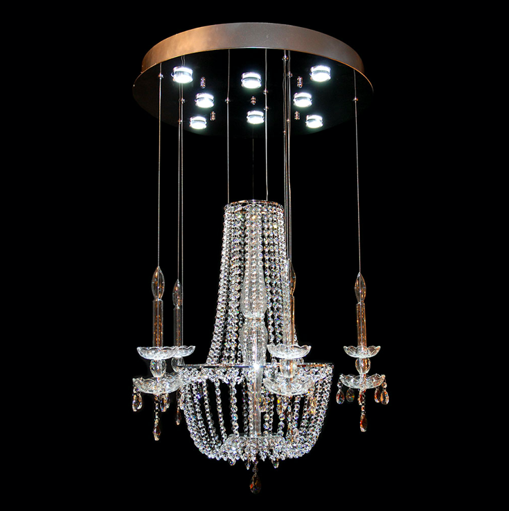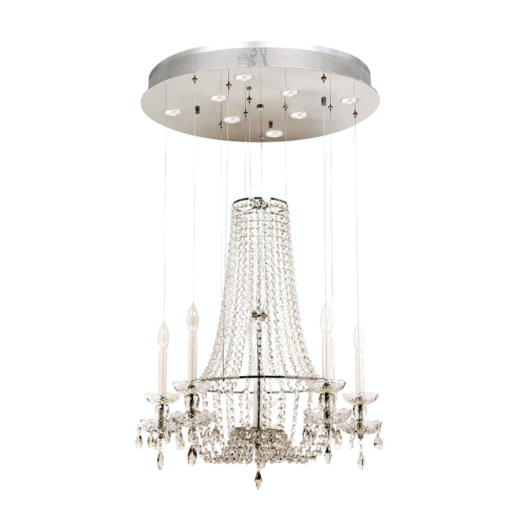 Valaisimessa on kahdeksan GU10 LED -polttimoa, jotka tuottavat kirkkaan ja tasaisesti jakautuvan valon. Kristallit heijastavat valoa kauniisti ympärilleen ja luovat tilaan näyttävän mutta miellyttävän valaistuksen, joka sopii sekä arkeen että juhlavampiin hetkiin.
