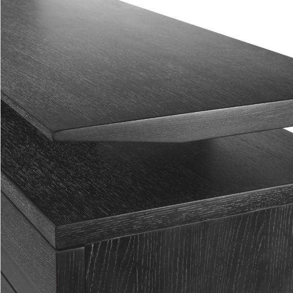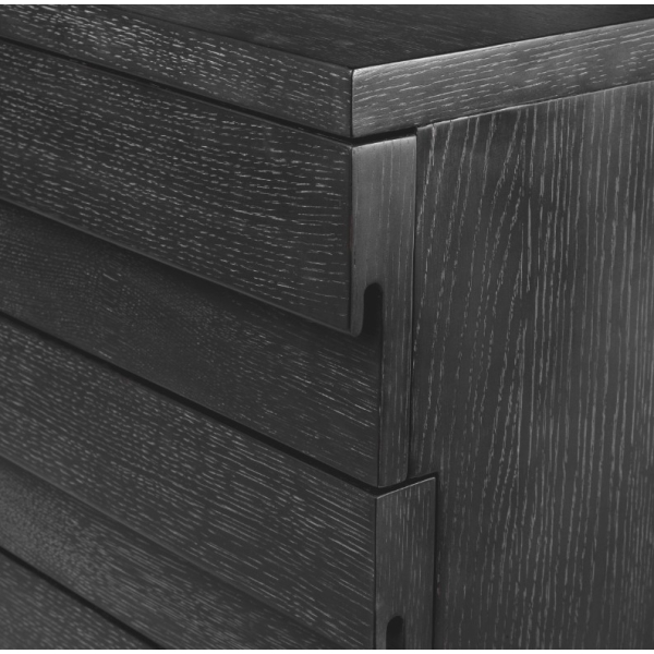 Hiilenharmaa tammiviilu antaa Quintinolle modernin ja ylellisen ilmeen, joka sulautuu saumattomasti erilaisiin sisustustyyleihin. Laadukas viimeistely korostaa puun kaunista syykuviota ja luo kalusteeseen syvyyttä sekä hienostunutta kontrastia.