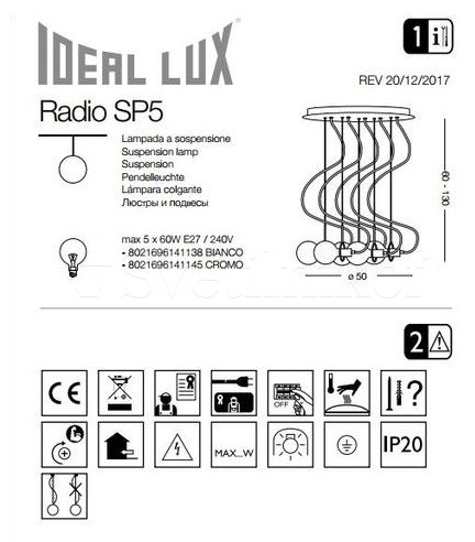 • Tehokas valaistus: Viisi 60W E27-polttimoa (ei sisälly toimitukseen) takaavat riittävän valaistuksen suurempiinkin tiloihin, ja valaisin on helppo koota toimitettavista osista.