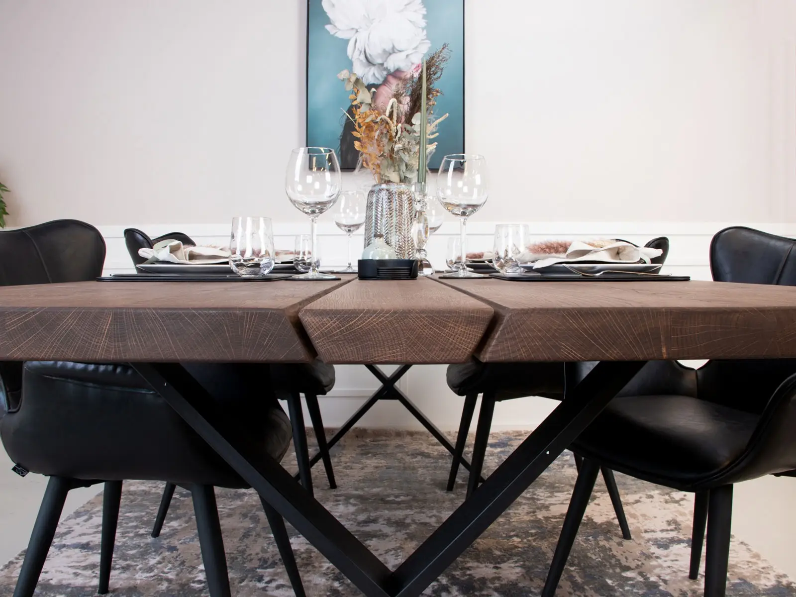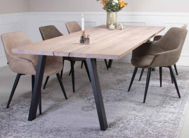Ragnar ruokailuryhmä B4-jaloilla ja kuudella Signe-tuolilla on vaikuttava kokonaisuus, jossa jykevä massiivipuu kohtaa modernin muotoilun. Pöydän selkeälinjainen ilme ja tukevat B4-jalat tekevät siitä ajattoman valinnan, joka istuu saumattomasti niin moderniin kuin skandinaaviseenkin ruokailutilaan.