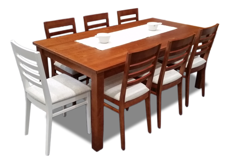 Raita ruokapöytä on kotimainen laatukaluste, joka yhdistää ajattoman tyylin ja kestävän rakenteen. Massiivikoivusta valmistettu pöytä on saatavana useissa eri väreissä, joko yksivärisenä tai kaksivärisenä, jolloin kannen ja jalkojen värit voi valita erikseen. Lisäksi pöytä voidaan valmistaa erikoismittaisena juuri sinun kotiisi sopivaksi. Raita-tuolit on tilattavissa lisätarvikkeina, verhoiltuna tai ilman, jotta kokonaisuus on täysin muokattavissa omaan tyyliisi.