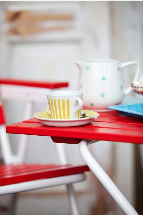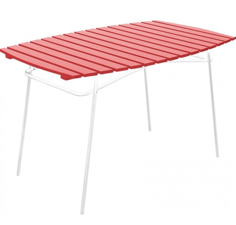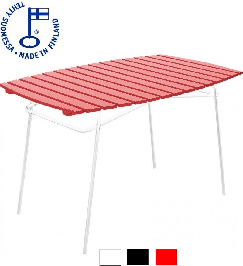 Retro-pöytä sopii täydellisesti parvekkeelle tai terassille. Tyylikäs ja pirteä väriyhdistelmä tuo tuulahduksen nostalgiaa! Tässä viehättävän retrohenkisessä pöydässä on pulverimaalattu teräsrunko ja upeat puuosat – kestävää mäntyä tietenkin. Pulverimaalattu teräsrunko on esikäsitelty ruosteenestoa edistävällä Bonderite® NT:llä. Pöytä on kokoontaitettava.
