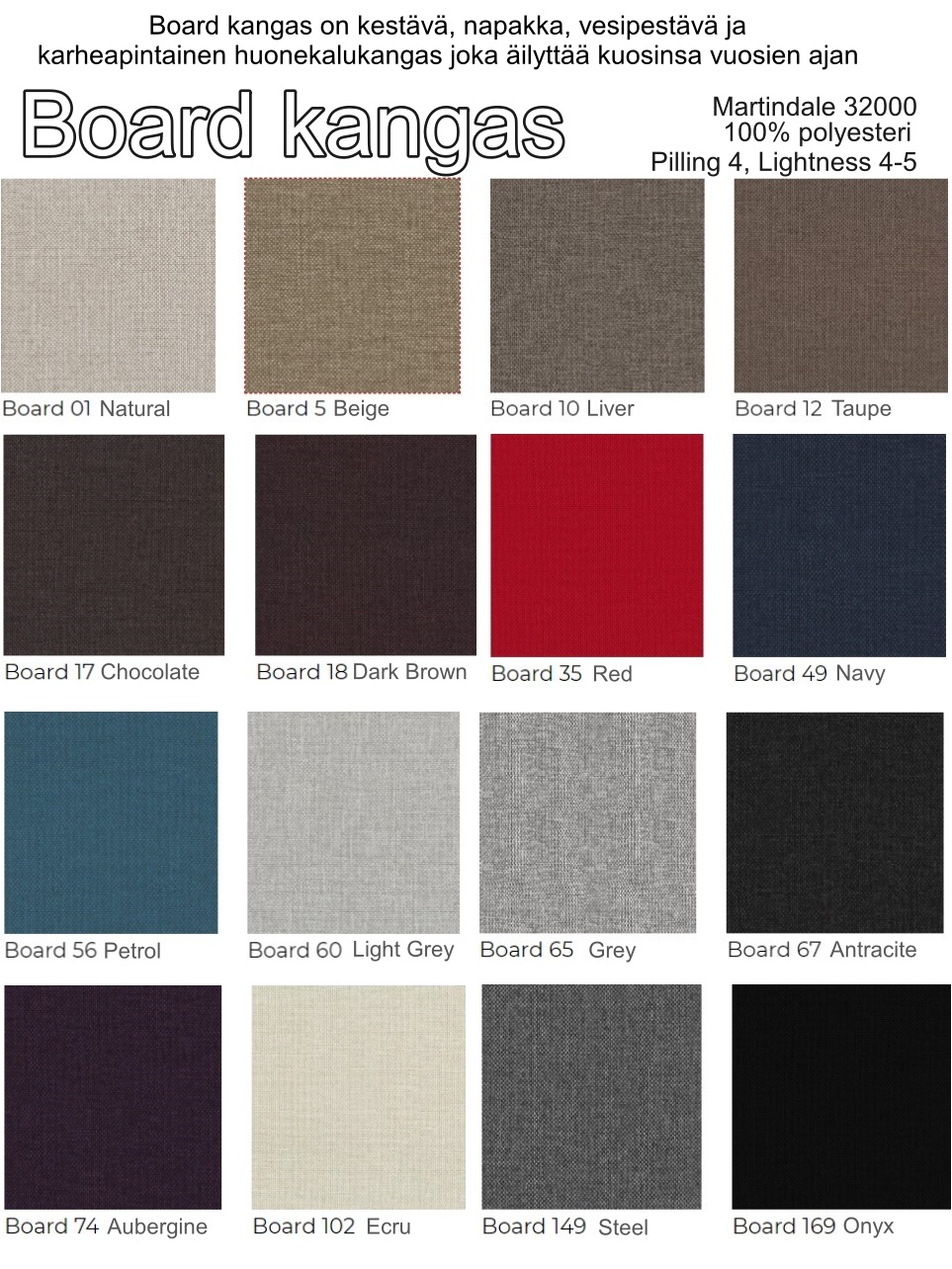 Verhoiluvaihtoehdot ja värit ovat laajat: