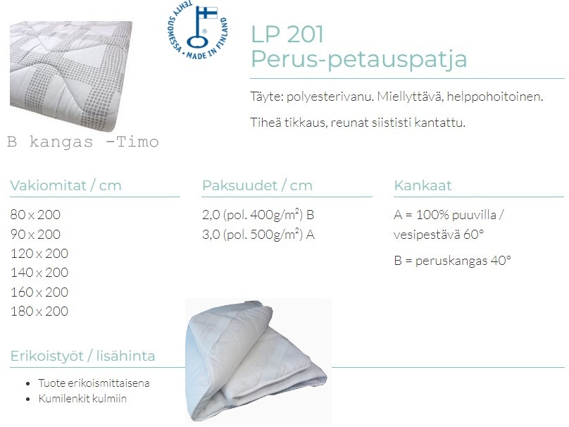 LeveysSyvyysKorkeusHalkaisijakannen paksuusRuokapöydän koko avattuna 1 jatkollaRuokapöydän koko avattuna 2 jatkollaNojatuolin mitat2 ist sohvan mitat3 ist sohvan mitatIstuinkorkeusTyötuolin istuinkorkeusIstuinleveysIstuinsyvyysJalkojen malliJalkojen korkeusSokkelin korkeusSelkänojan LeveysSelkänojan korkeusNiskatuen korkeusKäsinojan korkeus lattaiastaKäsinojan korkeus lattiastaKäsinojan leveysKäsinoja mallitIstuintyynySelkätyynyMuut pehmusteetDivaanisohvan Jalkapäädyn korkeusDivaanisohvan pääpäädyn korkeusJalkapäädyn korkeusPääpäädyn korkeusVuodesohvan syvyys avattunaVuodekokoIstuinkorkeus patjan kanssaReunan korkeusSivulaidan korkeusPatjapesän korkeusPatjakokoPäätyjen kootPatjan korkeus Patjan kovuusPatjan koko jatkettuvaVapaa tila sängyn allaSänkyjen materiaali Patjojen materiaaliSijauspatjan materiaaliKangasverhoiluKaapin sisämitatLaatikon sisämitatMateriaaliMateriaalitMittaMuut mitatMuutalisätietojaVäriJalkojen väriNahkaväritPuuväritVetimien väri Vapaa tila tuotteen allaTekniset tiedotPainorajaTakuuSaatavuusToimitusPainoTimantti väritJalat tai sokkeliKannen kokoElementit Ovien malliTimantti osien materiaaliHyllyjen materiaaliVetimetValmistusmaaTaljan mitatMattojen MateriaaliTyynyjen ja torkkujen materiaalimattojen mitatNukan pituusMattojen väritTyynyjen ja torkkujen väritRullamaton leveydetVarjostimen korkeus:Varjostimen leveysVarjostimen syvyysValaisimen MateriaaliValaisimen tiedotValaisimen väritVarjostimen väritHuomioitavaaTyötuolien ominaisuudetTyötuolien verhoilu