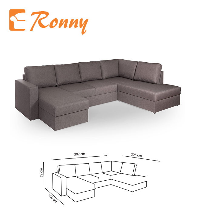 Ronny kulmavuodesohva kahdella vuodevaatelaatikolla omaa perinteisen suoralinjaisen muotoilun. Ronny on trendikäs ja käytännölline ison tilan sohva. Ronny sohva tarjoaa sekä mukavuutta että käytännöllisyyttä. Runko on laadukasta massiivipuuta, kalustelevyä sekä vaneria, ja istuimissa on laadukas zig-zag jousitus. Sohvan tausta on myös viimeistelty, joten sijoitus huoneen keskelle on myös mahdollista. Helpon mekanismin ansiosta muutat sohvan vuoteeksi vaivattomasti. Viimeistele kokonaisuus tilaamalla tyylikkäät koristetyynyt.