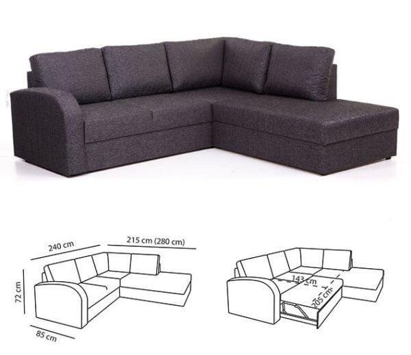 240x85x215 cm -Vuodekoko 143x205 cm