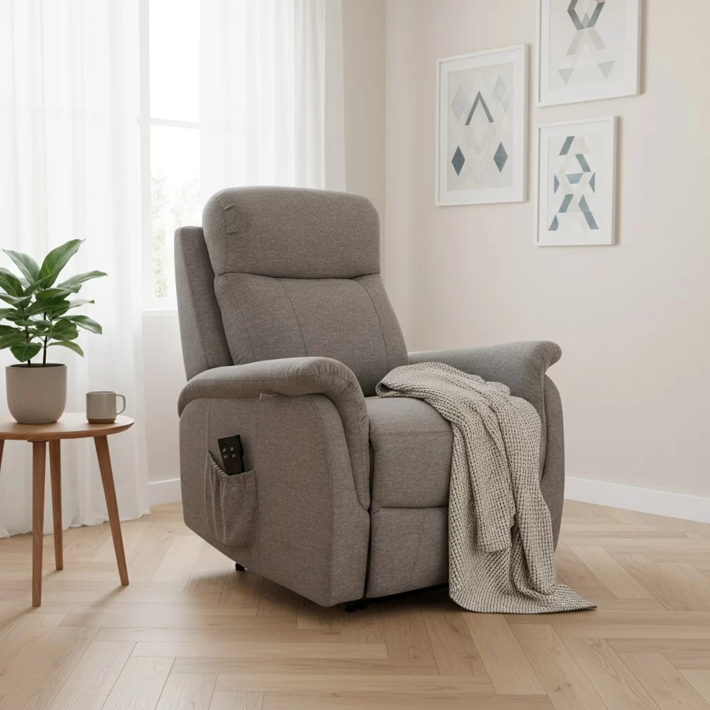 Nostoavusteinen Rubin recliner-tuoli tarjoaa ensiluokkaisen istuinmukavuuden ja erinomaisen tuen sähkötoimisen nostoavustimen avulla. Kaukosäätimellä ohjattava mekanismi nostaa käyttäjän kevyesti ylös, helpottaen liikkumista ja tehden istumaan nousemisesta turvallista ja vaivatonta . Ihanteellinen valinta esimerkiksi senioreille tai liikuntarajoitteisille.