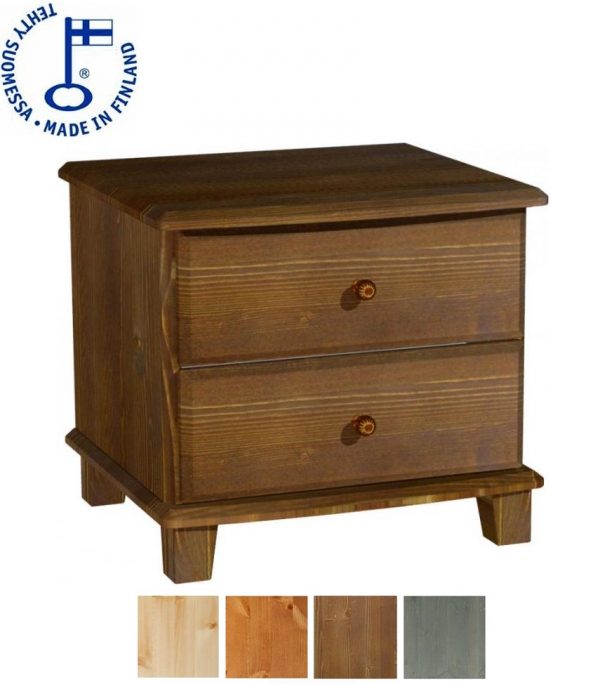 - Korkealaatuinen kotimainen mäntyinen Ruska tuotesarjan laatikosto kahdella laatikolla jossa metalliset liukukiskot. Ruska tuotesarjaa on saatavana usealla värillä ja kahdella eri vedinvärillä. Tuote toimitetaan osina.