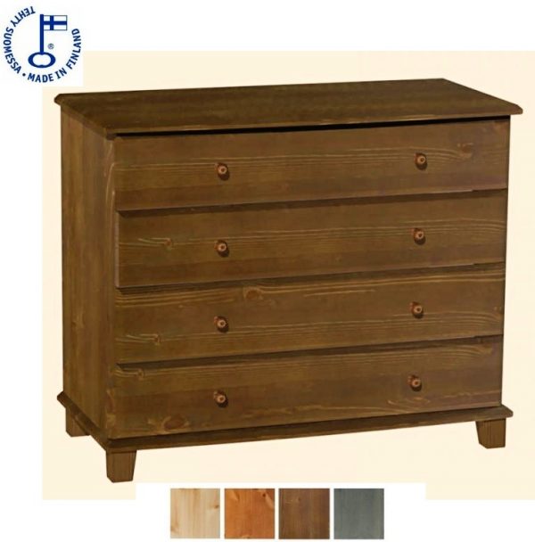 - Korkealaatuinen kotimainen mäntyinen Ruska tuotesarjan laatikosto jossa neljä leveää laatikkoa metallisilla liukukiskoilla. Ruska tuotesarjaa on saatavana usealla värillä ja kahdella eri vedinvärillä. Tuote toimitetaan osina.