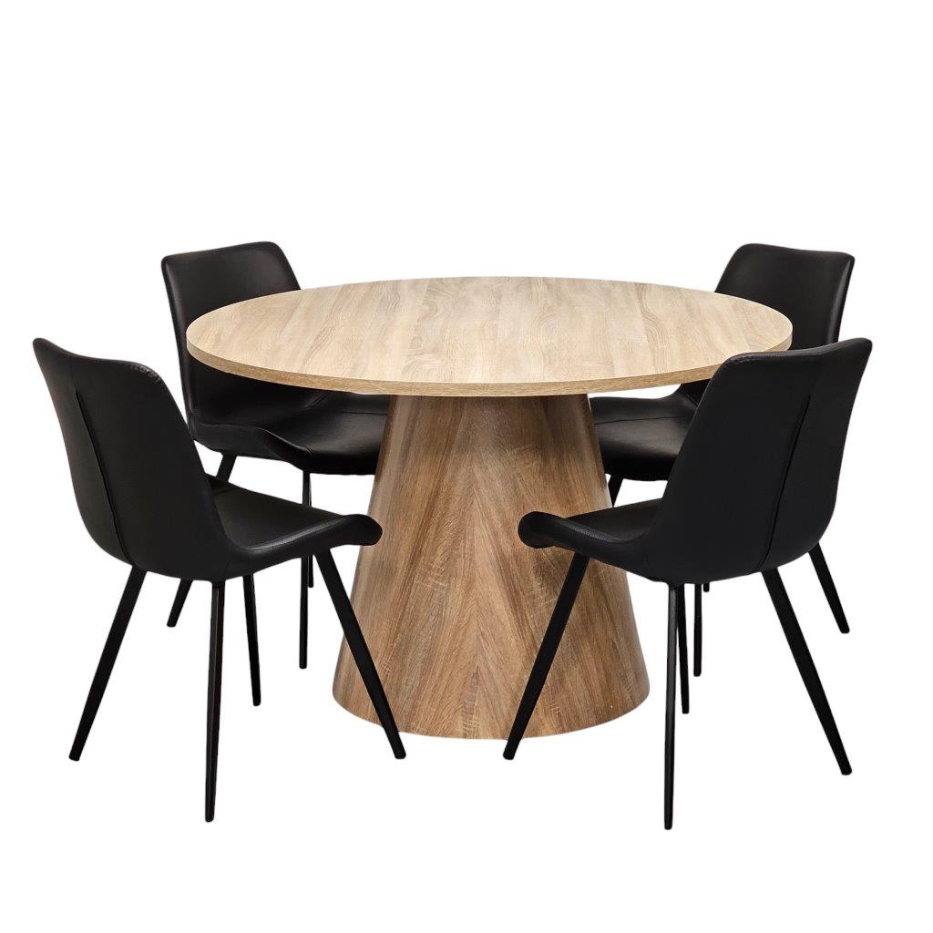 Saana-ruokapöytä yhdistää kestävän MDF-rakenteen, tammen sävyisen puujäljitelmäpinnan ja selkeälinjaisen designin luonnollisen tyylikkääksi kokonaisuudeksi. Tämä pöytä tuo kotiisi lämpöä, harmoniaa ja ajattoman skandinaavista kauneutta.