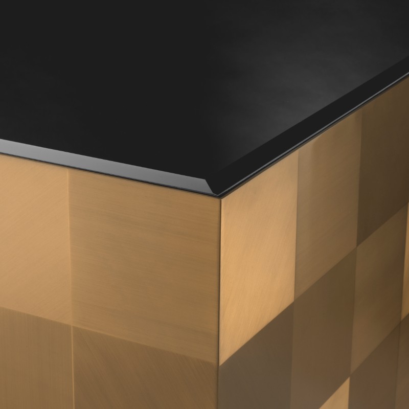 Harjattu messinkiviimeistely yhdistettynä tyylikkääseen mustaan lasikanteen luo upean kontrastin, joka huokuu modernia eleganssia. Laadukkaat materiaalit takaavat kestävyyden ja viimeistellyn ulkonäön, joka säilyy ajattomana vuodesta toiseen.