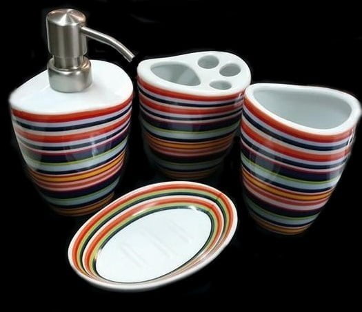 - Erittäin kaunis ja tyylikäs saippua annostelija, jossa 4 osaa: saippua-annostelija, saippua-alusta, hammasharja astia ja astia harjalle, siveltimille tms…