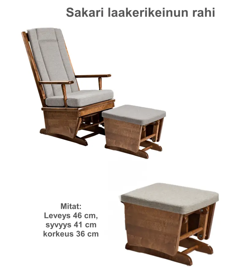 Sakari laakerikeinutuoli tarjoaa tasaisen ja miellyttävän keinunnan, joka rentouttaa koko kehon. Sen pelkistetty ja ajaton ulkomuoto sopii täydellisesti erilaisiin koteihin, ja mitoituksensa ansiosta tuolista on helppo nousta myös vanhemmille käyttäjille.