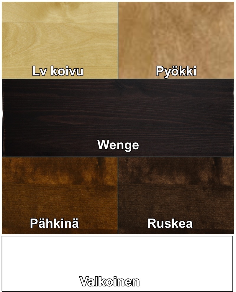 Koivu, Pyökki, Pähkinä, Ruskea, Wenge ja Valkoinen