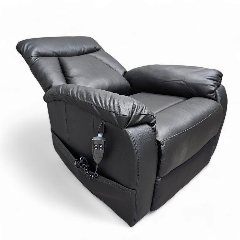Sampo recliner-tuoli tarjoaa täydellistä mukavuutta ja tukea kaikille käyttäjille – erityisesti heille, jotka arvostavat helppoutta ja ergonomiaa arjessaan. Sähkötoiminen nostoavustin auttaa käyttäjää nousemaan ja istumaan vaivattomasti, tehden siitä ihanteellisen valinnan myös liikuntarajoitteisille. Tyylikäs musta nahkaverhoilu viimeistelee tuolin ajattoman ja elegantin ilmeen.
