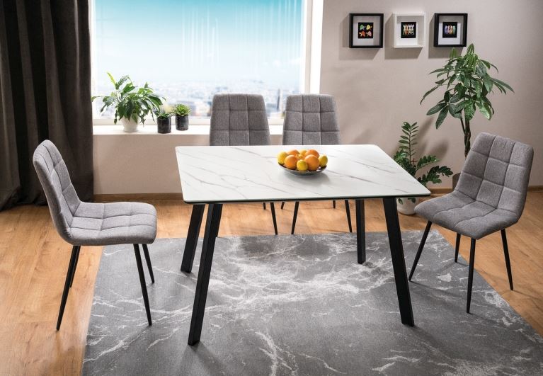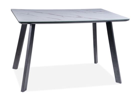 - Moderni Samuel -pöytä valkoisella marmorikuvioidulla lasilla. Toimitus osissa.